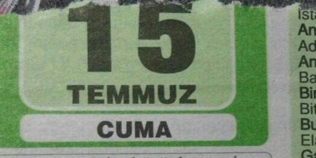 15 Temmuz Takvim Yaprağındaki Tevafuk