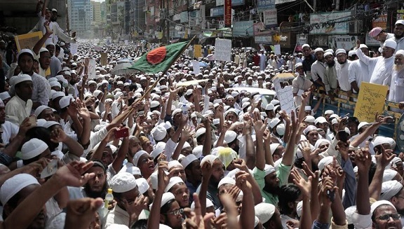 Bangladeş'te Myanmar büyükelçiliği önünde binlerce kişi katliamların durdurulması için protesto gösterisi düzenledi.