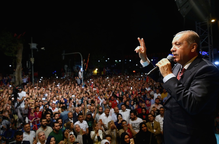 Erdoğan, Almanya'nın Köln kentinde iki hafta önce gerçekleştirilen Darbe Karşıtı Miting'e telekonferansla bağlanmasına Almanya Anayasa Mahkemesinin izin vermemesini eleştirdi.