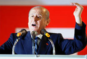 Başta Başbakan olmak üzere, iktidar partisinin tüm kadrolarının özellikle MHP'ye gönül veren ve asıl sahibi olan ülkücülere yönelik siyasi mütecaviz niyetlerinin, akılları çelmek için yapılan alçakça oyunlarının, ülkücülere kan kustururken ve hakaret ederken, şimdi dost görünmeye çalışan münafıkça hamlelerinin amacına ulaşamayacağının açık olduğunu ifade eden Bahçeli, şöyle devam etti: