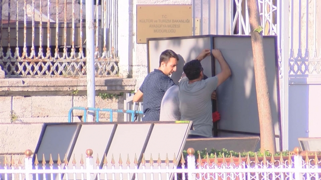 Danıştay kararı ile müze statüsünden cami statüsüne döndürülen Ayasofya'da müze tabelaları indirildi.