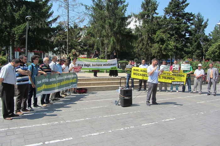 Sakarya Adalet ve Özgürlükler Platformu 520. hafta eyleminde şiddet sarmalından derhal çıkılarak barış ve kardeşliğin tesisi için öncelikle adaletin sağlanması gerektiği mesajı verdi. Platform adına Sakarya Dayanışma Derneği’nden Kadrican Mendi’nin okuduğu açıklamada “Çocukların çapraz ateşte kaldığı, ekmeğinin peşindeki gençlerin dükkânlarının önünde vurulduğu, son bir ayda 189 insanın hayatını kaybettiği, binlerce insanın yerinden, yurdundan göç etmek zorunda kaldığı bu çatışma sürecinin bir an önce sonlandırılması gerekmektedir… Platformumuz, daha önce de ifade ettiği gibi, mevcut gidişatı hiçbir şekilde halkımızın, insanlarımızın yararına görmemektedir. Bu sebeple çatışmaların derhal sonlandırılması talebimizde ısrarcıyız. PKK silahlarını derhal susturmalı, yerleşim yerlerinde sivillerin can güvenliğini tehdit eden eylemlerine son vermeli, kestiği yollarda masum insanların hayatına kast etmemeli ve kaçırdığı tüm kişileri serbest bırakmalıdır.” dedi.