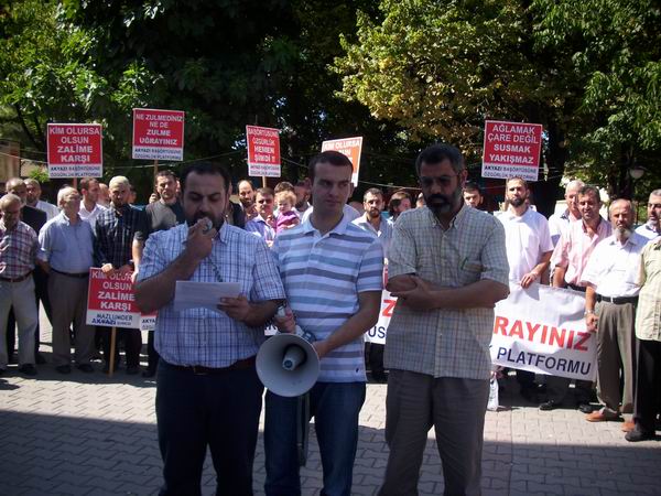 Vakıf adına selamlama konuşması yapan Sahir AKÇA " Akyazılı kardeşlerimizin bu mücadelelerine destek için buradayız. Kardeşlerime bu onurlu mücadeleleri için teşekkür ediyorum, esselamu aleyküm".
