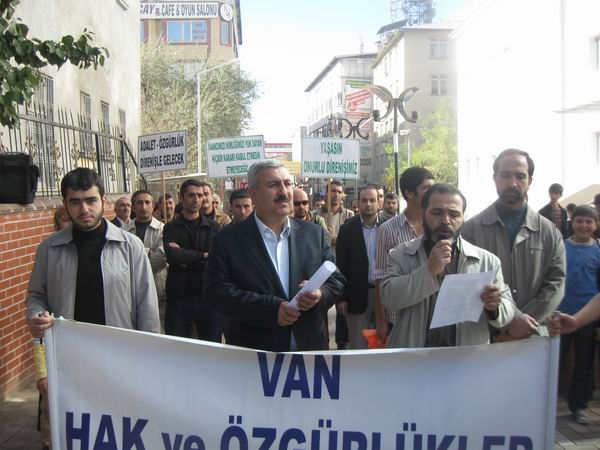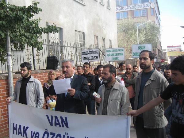 VAHÖP (Van Hak Ve Özgürlükler Platformu) Bileşenlerinin düzenlemiş olduğu 'Gündeme Dair (KCK Davası- Başörtüsü Sorunu)' Basın açıklaması Sanat Sokağında yapıldı. Gündemdeki konulardan biri olan 'KCK Davası' ile ilgili basın açıklamasını Platform adına Umut Işığı Derneği Yön. Kur.Üyesi Erhan ŞENGÜL okudu. Gündemin diğer konusu olan 'Başörtüsü Sorunu' ile ilgili basın metnini de Mazlumder Van Şubesi Yön.Kur.Üyesi Fuat DEĞER okudu.