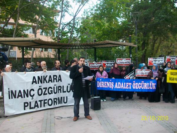 Ankara İnanç Özgürlüğü Platformu tarafından düzenlenen başörtüsüne özgürlük eylemi 247. Haftasına girdi. Basın açıklamasını platform adına Soner Kartal okudu.
