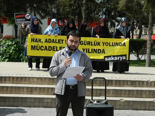 Sakarya’da her cumartesi yapılan adalet ve özgürlükler eyleminde 449. hafta basın açıklamasını Diriliş Saati Dergisi adına Muhammed Emin Duman okudu. Bu haftaki açıklamada, Meclis’te kabul edilen yeni MİT yasası ve “Umut Davası” kapsamında Yargıtay tarafından onanan cezalar gündeme getirildi.