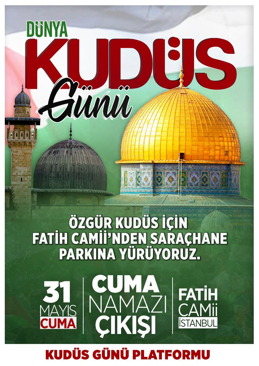 Kudüs günü İslam günüdür; İslam’ın ihya edilmesi, ona yeniden canlılık kazandırılması gereken gündür; İslam’ı ihya edelim, İslam kanun ve hükümlerinin İslam ülkelerinde uygulanmasını sağlayalım. Kudüs günü bütün süper güçlere ihtarda bulunarak “bundan böyle İslam, habis piyonlarınız aracılığıyla sizin tasallutunuzda olmayacaktır artık!” dememiz gereken gündür. Kudüs günü İslam’ın hayat günüdür, Müslümanlar akıllarını başlarına devşirmeli ve sahip oldukları onca maddi ve manevi güç ve servetlerin farkına varmalıdırlar. Müslümanlar 1 milyarı -aşan- bir nüfusa sahipler, Allah gibi bir dayanakları, İslam gibi, iman gibi bir dayanakları var, neden korksunlar ki?! Dünyadaki devletler şunu bilmelidirler: İslam yenilmezdir! İslam ve Kur’an hükümleri bütün ülkelere hükmetmeli, galip olmalıdır, din, ilahi bir din olmalıdır; İslam Allah’ın dinidir ve bütün beldelerde ilerlemelidir. Kudüs günü böyle bir konunun ilanıdır işte; “Müslümanlar ileri!” diye haykırarak bunu ilan etmektedir. Bütün dünyada ilerlemek yani… Kudüs günü sadece Filistin günü değildir, İslam günüdür -aynı zamanda- İslam devleti günüdür, İslam cumhuriyeti bayrağının bütün ülkelerde dalgalanması gereken gündür. İslam ülkelerinde artık ilerleyemeyeceklerini süper güçlere anlatma günüdür.