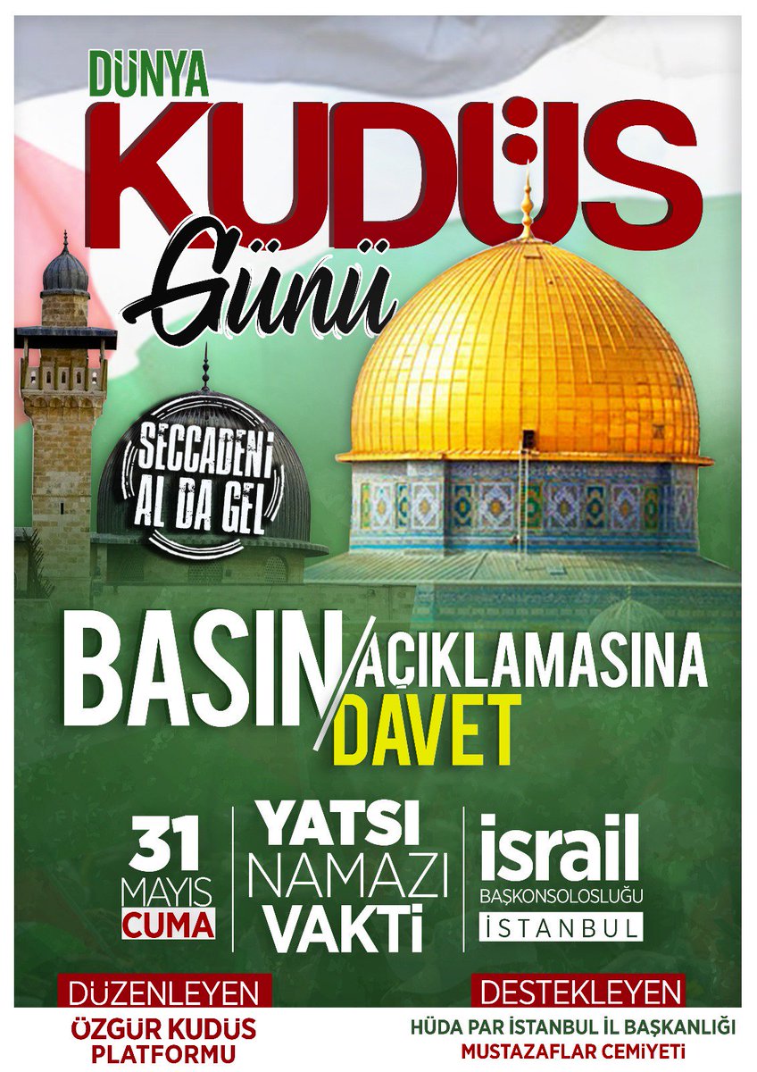 Ben Kudüs günü’nü İslam ve Hz. Resul-ü Ekrem -sav- günü biliyorum. Bütün güçlerimizi hazır hale getirmemiz ve Müslümanları itildikleri inzivadan çıkarak bütün güçleriyle harekete geçip ecnebilerin karşısına dikilmeleri gereken gündür. Biz olanca gücümüzle ecnebilerin karşısına dikilmişiz ve başkalarının bizim ülkemize karışmasına izin vermeyeceğiz; Müslümanlar, başkalarının gelip onların ülkesine karışmasına müsaade etmemelidirler. Kudüs günü milletler ihanette bulunan devletlere ihtarda bulunmalıdır! Kimlerin ve hangi rejimlerin uluslararası komplocularla işbirliğinde bulunup İslam’a karşı olduğunu anlayacağımız gündür bu! Bugüne katılmayanlar İslam’a karşı ve İsrail’den yanadırlar; katılanlar ise dindar, ahdine sadık ve İslam’dan yana ve Amerika’yla İsrail’in başını çektiği İslam düşmanlarına karşıdırlar. Hakk’ın batıla üst geldiği, hakkın batıldan ayrıldığı gündür.