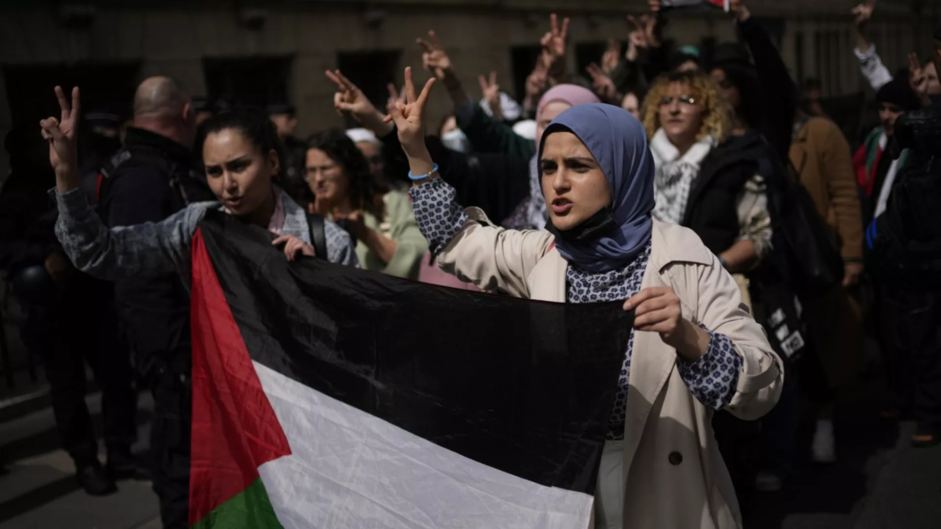 Prestijli üniversitedeki protestoya katılan yaklaşık 100 gösterici, dev bir Filistin bayrağı açtı ve Gazze'deki Filistinlilere destek sloganları atarken kurumu İsrail'i kınamaya çağırdı.