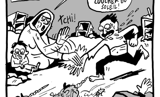 Gazete, Ramazan ayının başlaması nedeniyle yayınladığı çirkin karikatürde fare ve hamamböceklerini yakalamaya çalışan Filistinli bir erkeği, daha iftar vaktinin gelmemesi nedeniyle Filistinli bir kadının eline vurarak onu durdurmasını tasvir etti.