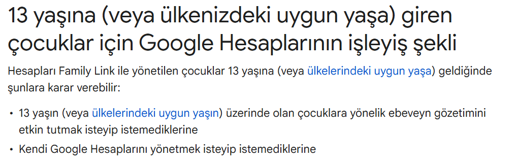 Daha önce 13 yaşına girildiği an Google hesabı otomatik olarak "yetişkin" moduna geçiş seçeneği sunuyordu. Bu da ekran süresi kısıtlamalarının, uygulama engellerinin ve konum paylaşımı kontrollerinin çocuk tarafından anında kapatılabilmesi demekti. Yeni düzenleme ile bu kontrollerin anahtarı yeniden ebeveynlere verildi.