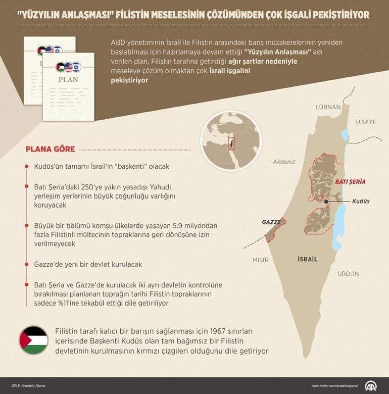28 ocak 2020’de bu proje açıklanırken Beyaz Saray’da Netenyahu da vardı. Bu plana göre “Kudüs İsrail’in bölünmemiş Başkenti” olarak ilan edildi. Bu karar aslında “Başkenti doğu Kudüs olan Filistin devleti”nin nasıl bir yalan olduğunu açıkça ortaya koymaktadır. Mahmud Abbas bile bunu o zaman bunu “Yüzyılın şamarı” olarak tanımlamıştı. Sonunda kınaya kınaya, sert demeçler vere vere biz de “dayatılan gerçeği kabul etmek zorunda bırakıldık”!?. “Akıllı olmamız, inatlaşmamız” konusunda zaten sürekli uyarılıyorduk. Ve henüz 15 Temmuz da yaşanmamıştı zaten.