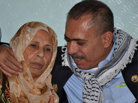 25 yıla yakın süredir kaldığı cezaevinden çıkan, yine ömür boyu hapsi mahkum Cemal Ebu Salih, kendisini kutlamaya gelen aile yakınlarıyla kucaklaşıyor.
