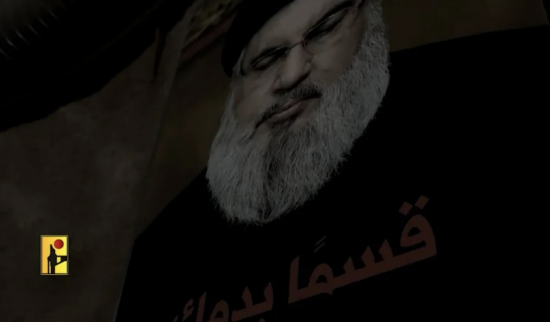 Yol boyunca savaşçılar, tesisin İmad 5 olarak işaretlendiği bir tabelanın ve ardından Direniş'in şehit lideri, Hizbullah'ın Genel Sekreteri Seyyid Hasan Nasrullah'ın anısına çekilen ve üzerinde açıkça şu sözlerin yazılı olduğu bir fotoğrafın yanından geçiyor: