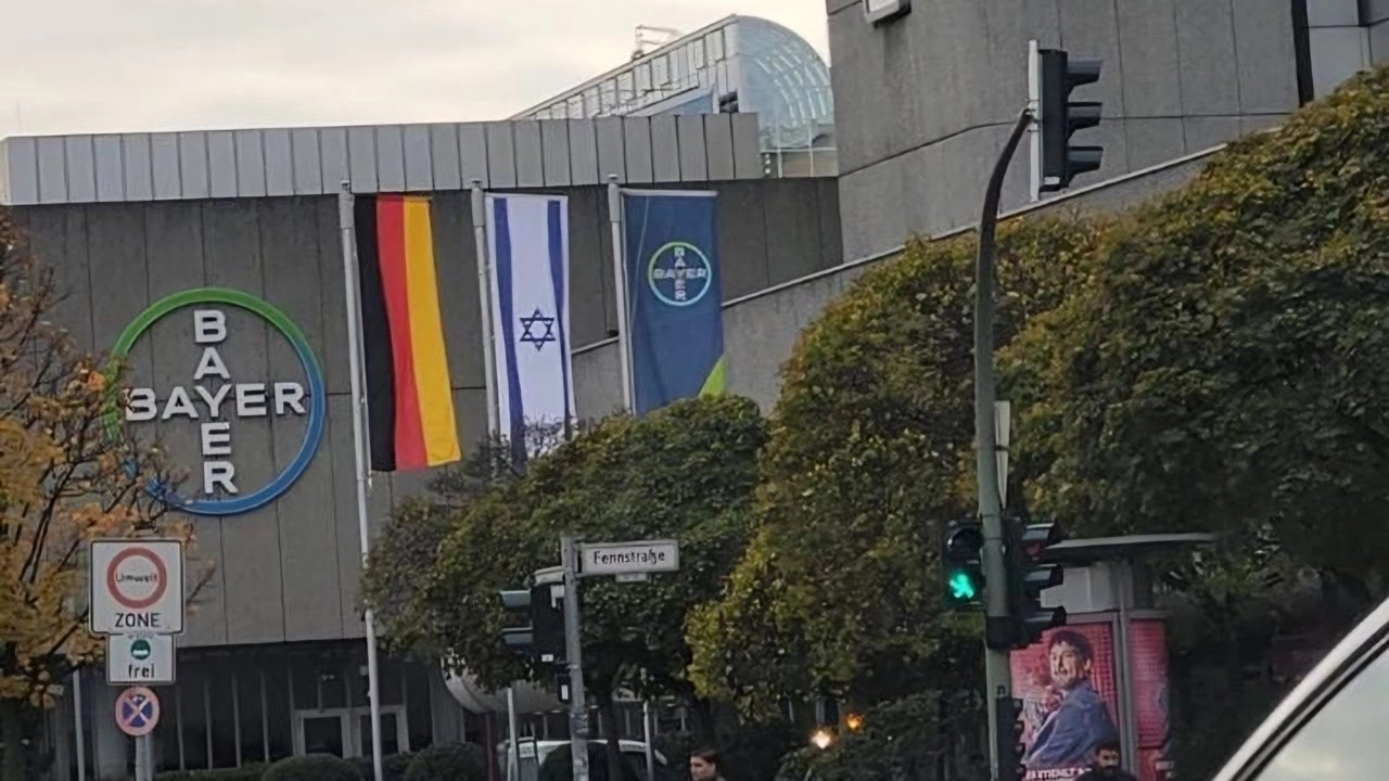 Dünyanın dev ilaç şirketlerinden olan Bayer Almanya'daki merkezine İsrail bayrağı astı. Bayer İsrail' e desteğini alenen açıkladı.