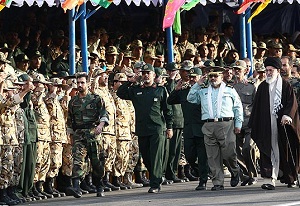 Başkomutan Hamenei daha sonra meydandaki askeri birlikleri denetledi. İslam İnkılabı Rehberi burada yaptığı konuşmada İran İslam Cumhuriyeti'nin geçtiğimiz otuz yılda giderek güçlendiğini hatırlatarak, günümüzde İran halkı, İslam Cumhuriyeti nizamı ve İran silahlı kuvvetlerinin bölge halkları arasında saygın bir yeri olduğunu vurguladı.