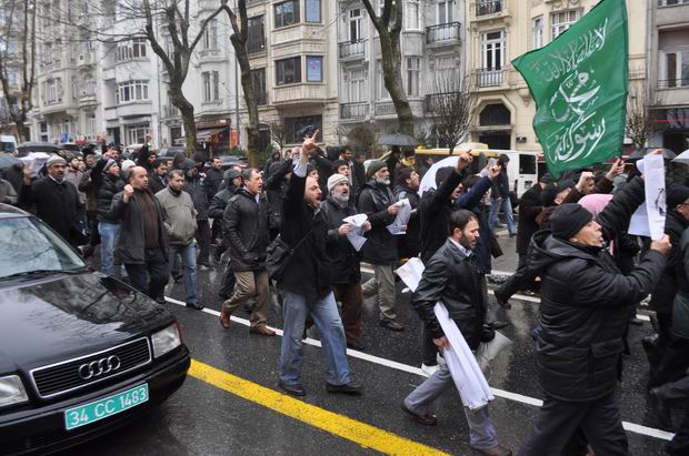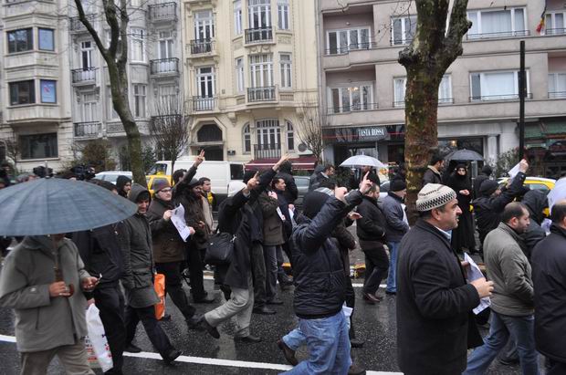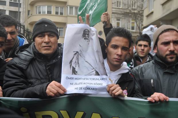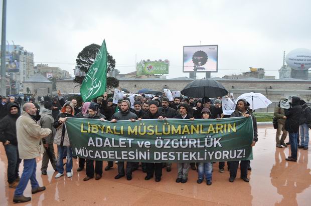 İslami kuruluşlar tarafından oluşturulan Libya Halkıyla Dayanışma Platformu'nun çağrısıyla Taksim Meydanı'nda toplanan Müslümanlar, buradan Gümüşsuyu'nda bulunan Libya Konsolosluğu önüne kadar kortej halinde ve sloganlarla yürüyerek Kaddafi diktatörlüğünün gerçekleştirdiği vahşi katliamı protesto ettiler. Yürüyüş sırasında trafik akışını duruduran göstericiler, Libya halkının özgürlük ve adalet taleplerini selamladılar.