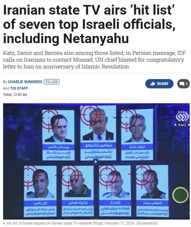 İran'de Devrim Muhafızları'na bağlı Ofogh isimli televizyon kanalında, İsrail Başbakanı Binyamin Netanyahu da dahil olmak üzere yedi üst düzey İşgalci İsrailli ismin yer aldığı "ölüm listesi" yayınlandı