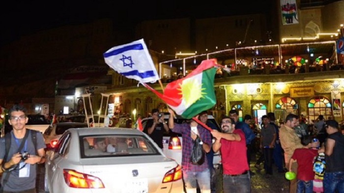 Irak Kürt Bölgesel Yönetimi'nin (IKBY) Erbil kentinde, anayasaya aykırı olarak yapılan tartışmalı referandum sonuçları henüz açıklanmadan İsrail bayraklarıyla kutlamalar başladı.