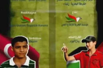Filistinli çocuklar Mavi Marmara için Türkçe ve Arapça söylüyor.