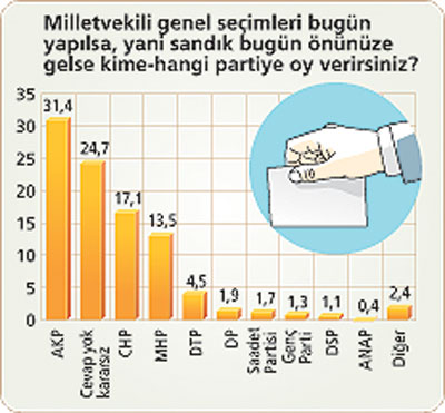 Milliyet gazetesinin A&G Araştırma Şirketine yaptırdığı son kamuoyu araştırmasının sonuçları açıklandı