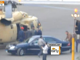 CBS televizyonunun yayımladığı görüntülerde, başkanlık sarayında bir helikopterin, pistteki bir makam aracından Mübarek olduğu belirtilen yolcuyu alarak hareket ettiği görülüyor. CBS, videonun Mübarek'in görevi bıraktığını açıklamasının hemen ardından çekildiğini bildirdi.
