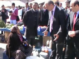 Taksi durağından çıkan Tekin ve partililer buradan perşembe pazarına gelerek vatandaşların