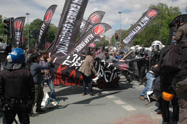1 Mayıs'ı kutlamak için Taksim meydanına yürümek isteyen, aralarında ÖYB-Eğitim İlke-Sen ve Emek-Adalet Paltformu(EAP) ve Antikapitalist Müslümanlara Taksim'e yürüyüş yasağı nedeniyle polis tarafından müdahale edildi.