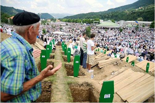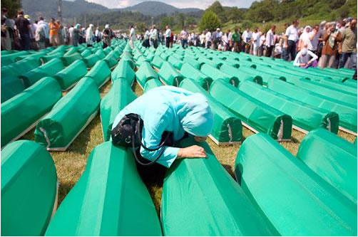 *15 sene önceki katliâmda katledilen 10 binden fazla müslümandan kimlikleri DNA testi ile belirlenen 775 müslümanın kemiklerinin konulduğu tâbutlar..