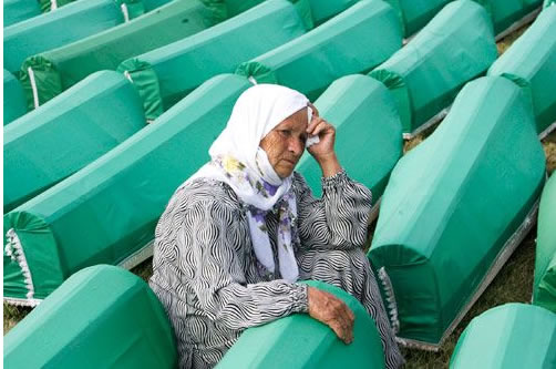 *Srebrenitza kurbanlarının tâbutları arasında bir ana.. Söze gerek var mı?