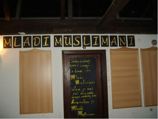 O mekanda, merdivenle yukarı çıkılan ve orada genişçe bir "sofa"nın bulunduğunu hissettiren bir kat daha var.. Kapıda, "Mladi-Muslimani" yazısı var.. Belki de çoğu kimsenin dikkatini çekmiyen bir mekan..