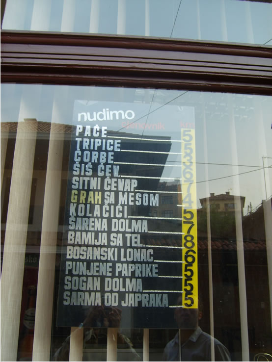 Bu arada, o civarda, bizdeki fukara kesimine hitab eden dargelirli kimseler için, çok para kazanmak tamahı taşımadığı anlaşılan kimselerce işletilen "Aşçinica/ Aşevi" denilen mekanlar da var.. Buralardaki yemek listelerinin ismine bakarsanız, çoğunun bildiğiniz yemekler olduğunu neler olduğunu anlarsınız..