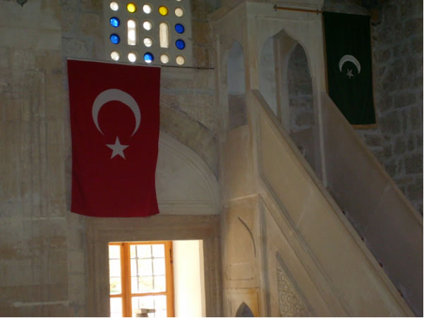 *Haci Ali Camii"ni yeniden yaptıran Türkiye"ye şükran nişanesi: Bayrak, mihrabda..