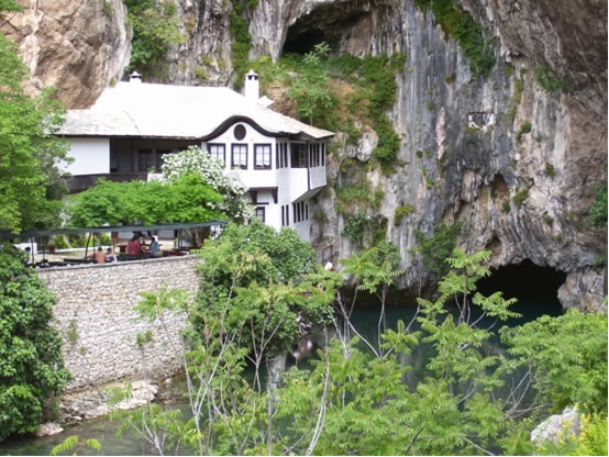 Mostar"a geri dönmeden, bir yol sapağından ayrı bir yere doğru ilerliyoruz.. 30 km. kadar süren bir yolculuktan sonra, yüksekliği yaklaşık 50-60 metre yüksekliği bulan dev bir kaya kütlesinin dibine vardığımızda, karşımıza çıkan, beklenmedik ve son derece hoş bir sürpriz..
