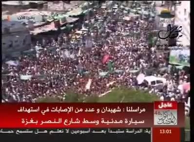 İşte Aksa Tv'den canlı olarak verilen Kassam Komutanlarının cenaze töreninden görüntüler;