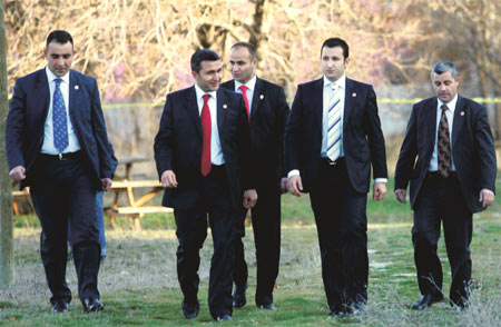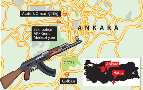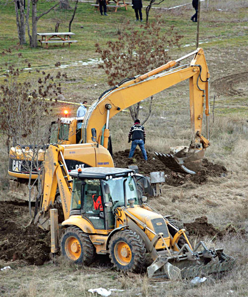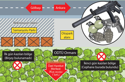 AKP Genel Merkezi önünde bulunan mesire alanında polisler kazı yaparken Başbakan Erdoğan'ın korumaları olay yerine gelerek yetkililerden bilgi aldı.