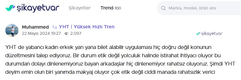 Sosyal mecralarda ülkedeki taciz vakalarına da atıf yapan kadınlar bundan rahatsız olurken diğer taraftan islami hassasiyeti olan kadınlar bu duruma isyan ettiler. Bir kadının tanımadığı bir erkekle saatlerce sürebilen yolculuğu yan yana yapıyor olmasının ya da hassasiyeti olan bir erkeğin tanımadığı bir kadınla saatlerce yan yana yolculuk yapmasının kabul edilebilir bir yanı olmadığı konusunda vatandaş hem fikir. Böylesi bir duruma TCDD yetkililerinin neden gereğini yapmadığı ise ayrıca merak konusu olmakta.