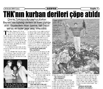 Türk Hava Kurumu (THK)'nun, Kurban Bayramı'nda topladığı, arasında sağlam olanların da bulunduğu derilerin bir kısmını çöpe attığı iddia edildi.
