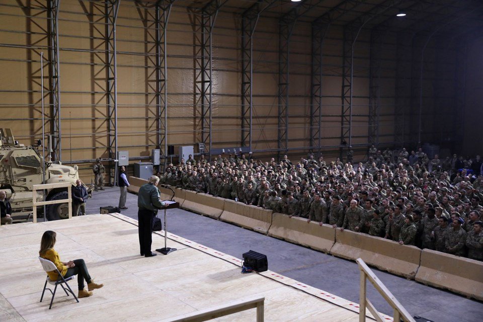 Beyaz Saray Sözcüsü Sarah Sanders, sosyal medya hesabından yaptığı açıklamada, Trump'ın eşi Melania ile birlikte Noel gecesinde hizmet ve başarılarından dolayı teşekkürlerini sunmak ve Noel Bayramlarını kutlamak için Irak'a geldiğini belirtti.