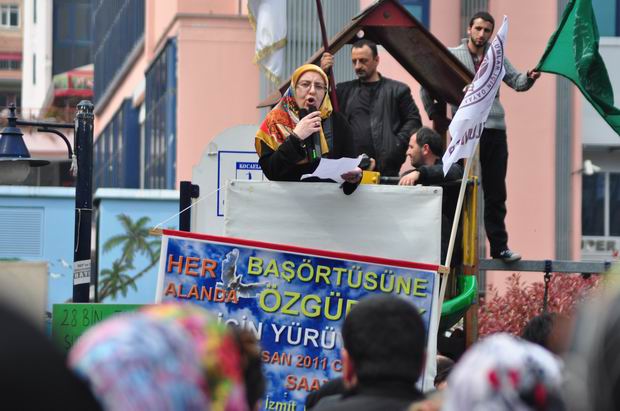 Kocaeli Hak ve Özgürlükler Platformu adına bir konuşma yapan MAZLUMDER Kocaeli Şubesi Eski Başkanı Nigar Gümrükçüoğlu ise başörtüsü mücadelesinin öneminden bahsederek şunları söyledi: "AK Parti, seçilemeyecek yerlerden başörtülü milletvekili adayları göstererek umut tacirliği yapmaya son vermelidir. Muhalifler ise mecliste başörtüsü konusu ile ilgili hiçbir çalışma yapılmaması ile ne kadar samimi olduklarını ortaya koymuşlardır".